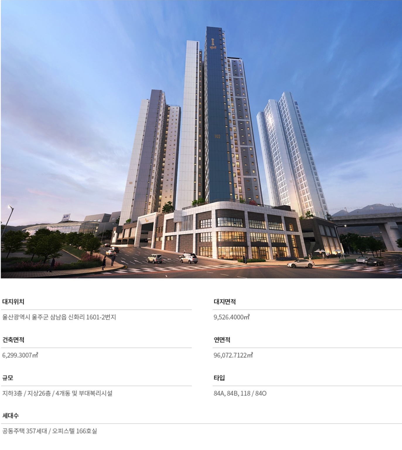 현장 : 울산광역시 울주군 삼남읍 신화리 1601-2ㅣ견본주택 : 울산광역시 울주군 삼남읍 신화리 1604-5